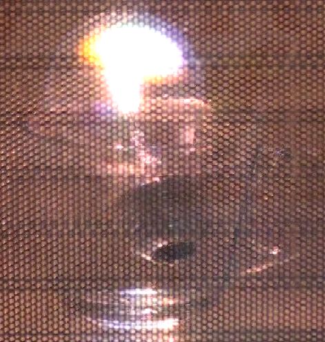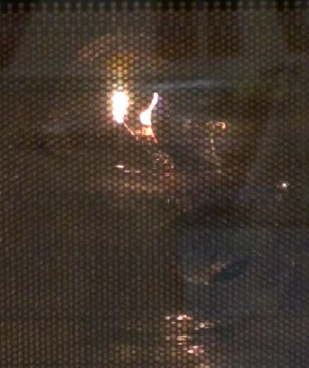 最後鎢絲被汽化而留下燒紅的兩根金屬支架