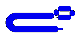 In the second dark balloon twist a 3-inch, 1-inch, 3-inch, 1-inch series. Twist the knot into the last twist to make a loop. Now Pinch Twist the two one-inch bubbles. These will be "cheeks" with the 3-inch bubbles making the lips. Bring the nipple end around and tie it to the opposite side of the lips, making a large loop. Squeeze the loop to distribute the air evenly.